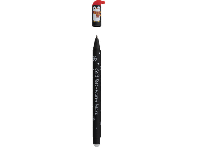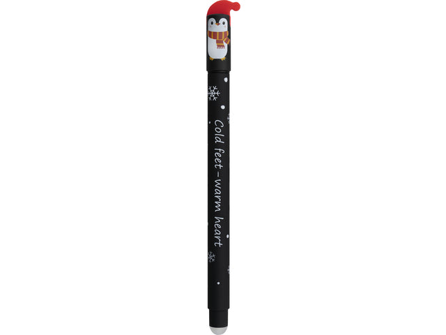 Uitwisbare gelpen 'Animal erase it' Limited winter editie. Lijndikte 0,7 mm, schrijfkleur blauw. Met de plastic punt aan het uiteinde van de pen kan het schrift worden weggeveegd door de opgewekte wrijvingswarmte. De pen is voorzien van een grappige slogans op de houder die past bij het motief. Ideaal voor school, college of op kantoor. Verkrijgbaar in meerdere motieven. Gelpen is navulbaar. Pen voldoet aan de CE speelgoedrichtlijn. Op blisterkaart. Wordt assorti geleverd. (Peperkoek - Sweetest Season of all, rendier - Oh deer, penguin - Cold feet- warm heart)