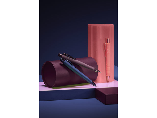 Balpen Polyball, met een antislip soft-touch oppervlak en een ergonomische driehoekige gripzone, biedt een bijzonder zacht schrijfgevoel dankzij de extra brede XB-vulling - ideaal voor veelschrijvers. Deze navulbare balpen met drukknopmechanisme en stevige metalen clip maakt gebruik van standaardvullingen met grote capaciteit en is duurzaam ontworpen met 64% gerecycled kunststof in de plastic onderdelen. Schrijfkleur blauw, documentecht. Kleur Future dusk.