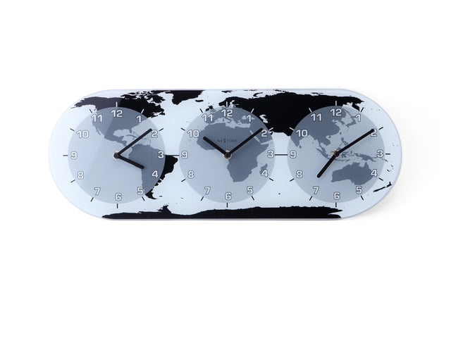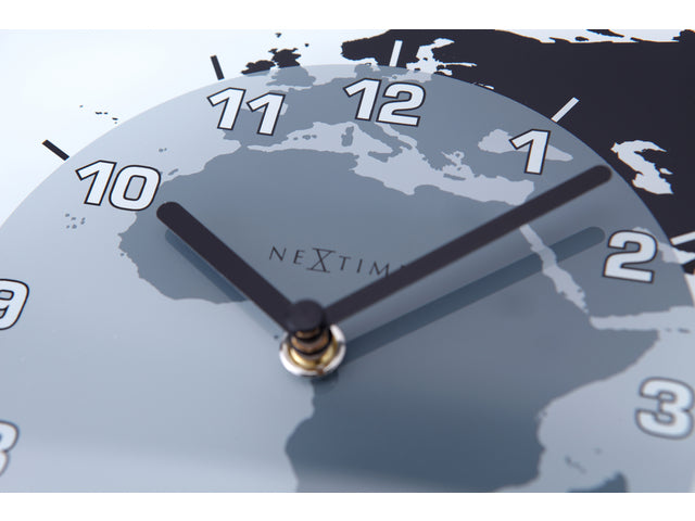 De NeXtime Mondial glasklok is bedrukt met een afbeelding van een wereldkaart en laat drie verschillende tijdzones zien in de wereld. Reist u veel of doet u veel zaken in deze landen' Dan is dit een ideale klok voor aan de wand in uw huis of op kantoor. Afm. 19x50cm